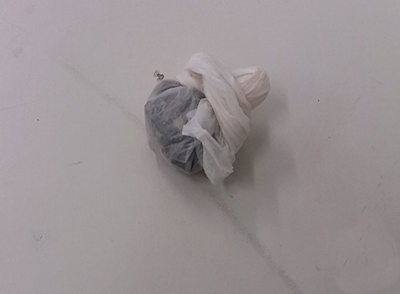 trouxinha de substância semelhante a maconha no bolso do mesmo. A equipe