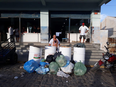 Alimentação, e colocaram o lixo em frente ao açougue, além da fedentina,