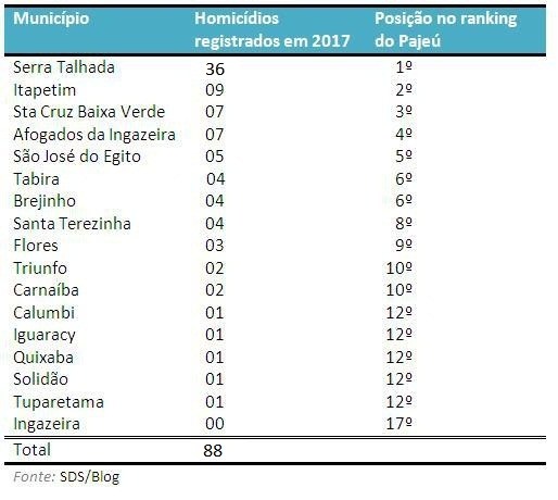 Pernambuco apontam que até 31 de outubro de 2017, a microrregião, composta por dezessete municípios, havia registrado 79 CVLI –