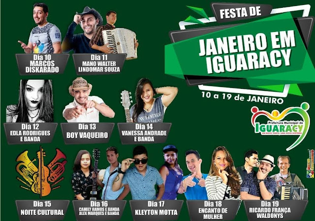 Confira a programação da Festa de Janeiro de Iguaracy. Notícias Por Blog do Pereira.Net Publicado em 10 de janeiro de 2018 Ultima atualização 2 de fevereiro de 2022 0 93 Compartilhado FestaIguaracy-PERegião 0 93 Compartilhado FacebookWhatsAppTelegram