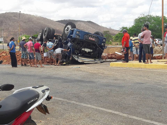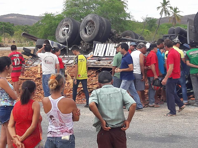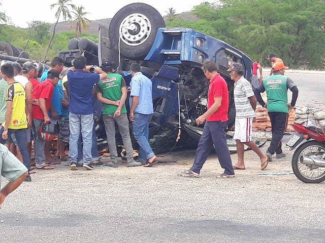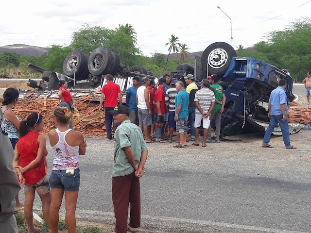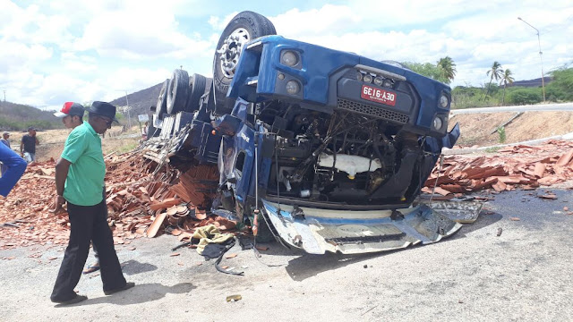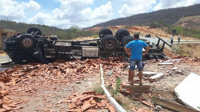 Manhã de quarta-feira: Caminhão carregado de telhas capota próximo a Juru-PB