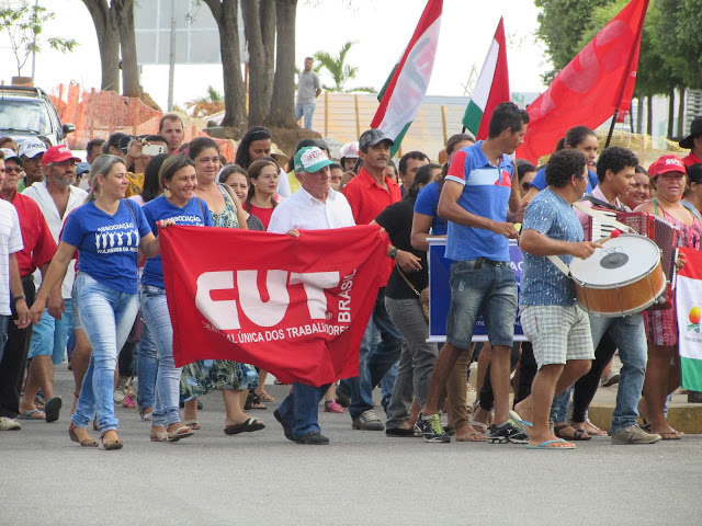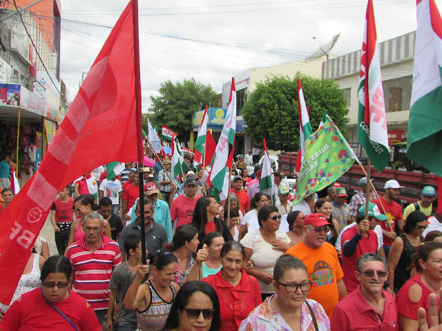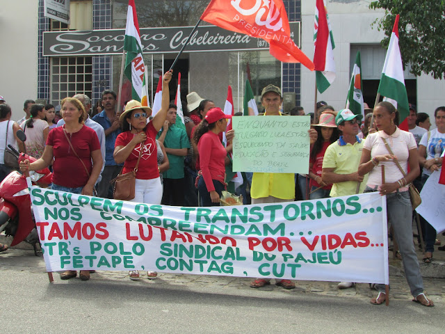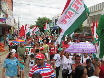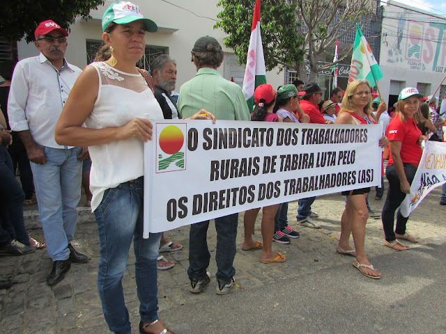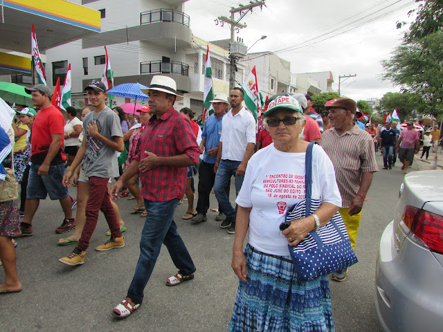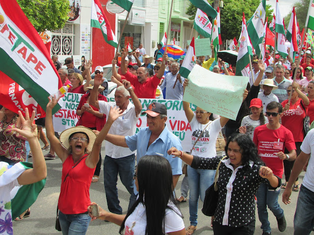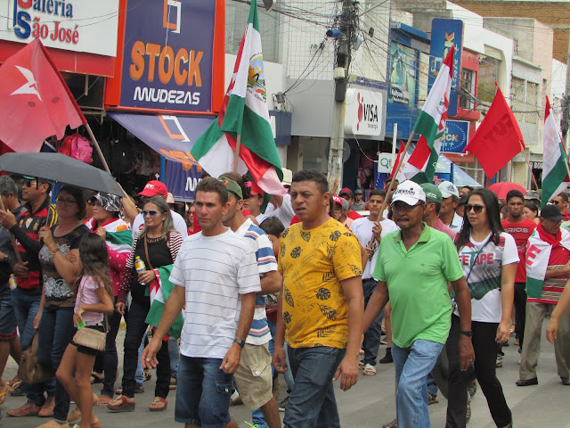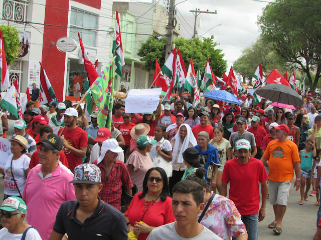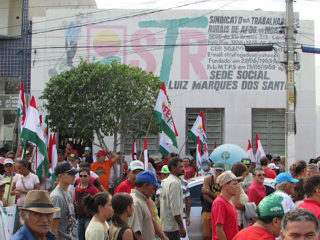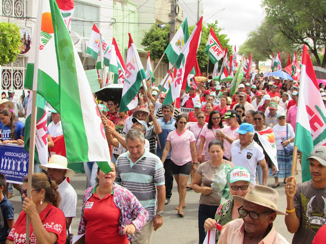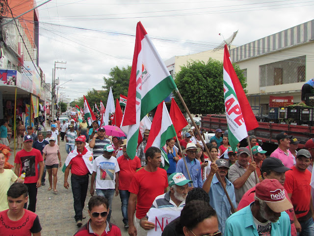 Trabalhadores Rurais de Afogados na avenida Rio Branco, fazendo um