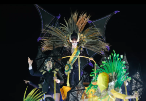 madrugada desta segunda (12). No último carro, um componente viveu um “presidente vampiro” do neoliberalismo, referência ao presidente Temer.
