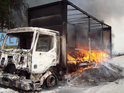 Caminhão do Rio Grande do Norte pega fogo em Riacho do Meio.