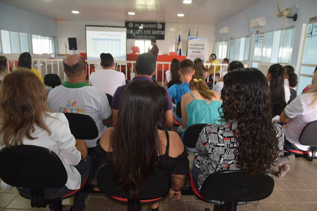 secretária de Saúde, Jussara Araújo, presidiu a audiência. Durante o