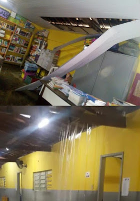 chuva danificasse mobiliário e material didático na Escola. Eles