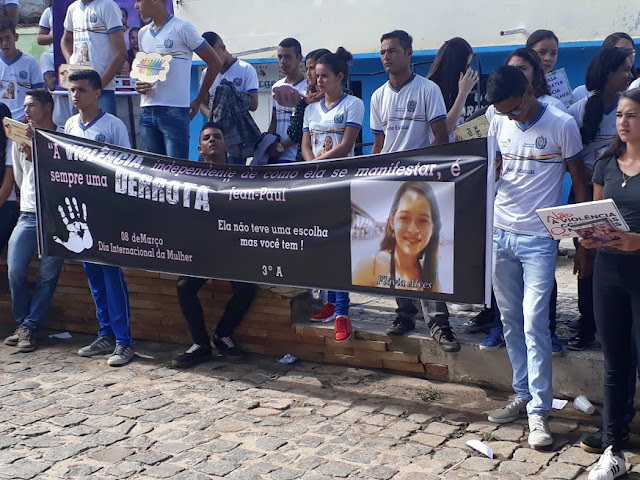 No dia Internacional da Mulher Santa Terezinha fez uma justa homenagem a jovem Flávia Sobral morta no ano passado pelo seu ex noivo, também a outras mulheres Terezinhenses que foram tragicamente assassinadas, cito Geralda Soares da Conceição em 1996; Maria Gorete Anastácio Araújo em 1995 e Maria das Graças Oliveira em 1989. O clima na marcha das mulheres não era de alegria, mas sim de cobrança pelo fim da violência. De frente a prefeitura professores, estudantes, sindicatos, membros de associações, autoridades e boa participação popular se engajaram na luta contra o machismo e opressores que apesar dos crimes, muitos ainda continuam impune.