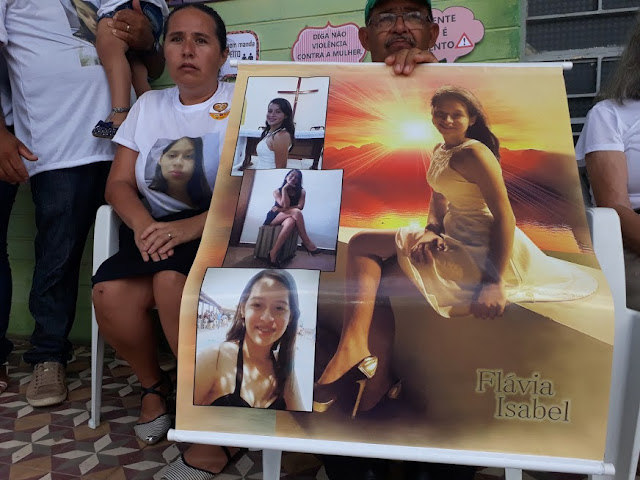 “Flávia era uma adolescente estudiosa, boa filha, obediente aos pais e cheia de sonhos. Conheceu um rapaz na igreja que frequentava, começaram a aproximar-se e logo ele pediu aos pais, sua filha em namoro. Os pais permitiram ditando regras, com sentimento de incerteza quanto aos sentimentos da filha e duração do possível relacionamento, este que durou até três anos, até que noivaram em março de 2016 quando o rapaz distanciou-se da menina, afirmando que trabalhava muito. Quando viajou em busca de trabalhar a fim de ter condições de construir uma família com a menina, o rapaz demonstrava tranquilidade e bom caráter, no entanto cometeu feminicídio.