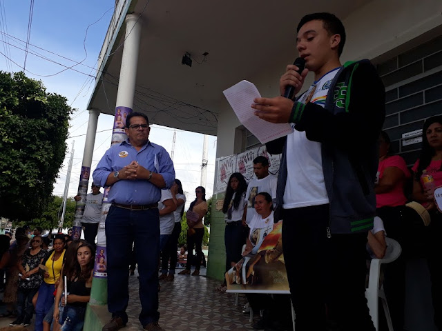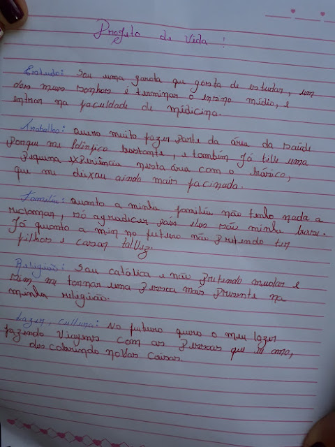 O estudante Darlyson leu um projeto de vida da garota feito em um trabalho desenvolvido pela professora Glécia.