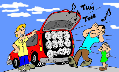 som do mesmo ligado em alto volume no “Bar Pub”, perturbando o sossego