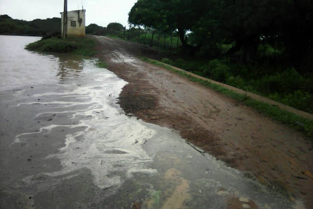 Açude Do Felipe, água já lava a estrada – Foto de Pedro Ivo.