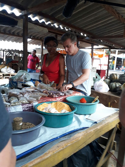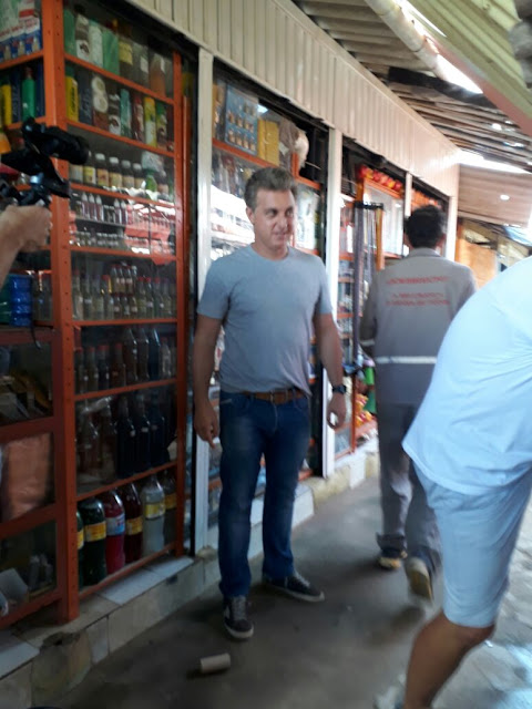 O apresentador visitou o centro comercial da cidade, conversou com feirantes e atendeu fãs.