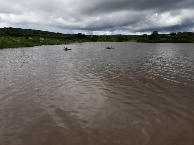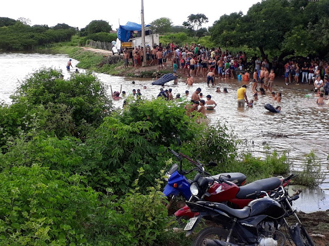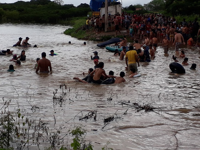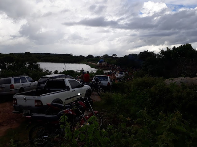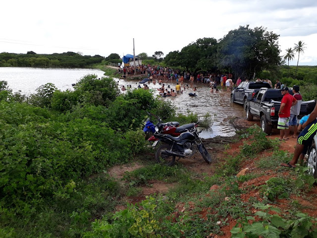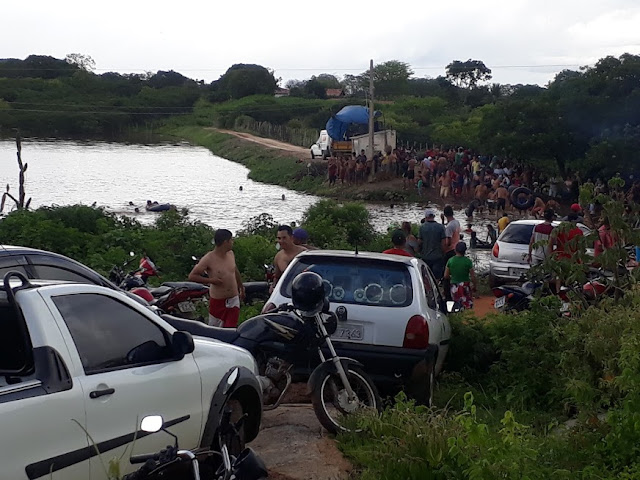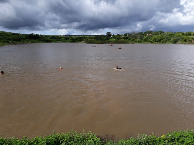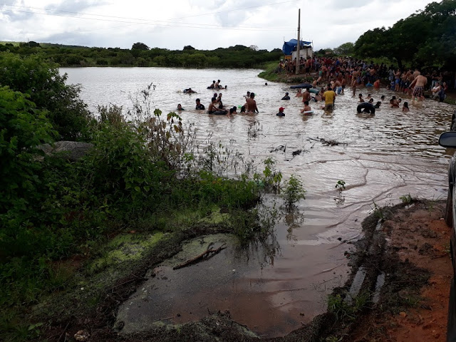 Na semana passada o açude do sítio Felipe sangrou para a alegria de todos e tivemos até missa por lá para agradecer a Deus pelas chuvas e pelo bom ano de inverno. Neste domingo (29) foi a vez da festa regada a ‘frexeiros’ dentro d’água, churrasco, música ao vivo e claro, para quem gosta, muita pinga pura ou misturada com limão. O açude ficou parecendo uma praia, gente de todo lado, crianças, mulheres, moças, rapazes e homens tiraram o dia para brincar na água e ouvir músicas com Neto dos Teclados, Cícero Tobias e outros artistas da casa que só não entraram com a festa pela noite porque começou a chover e para não ter prejuízos com os equipamentos pararam de cantar.