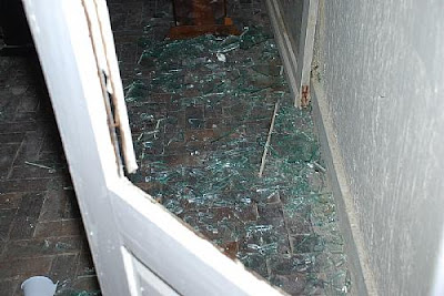 Chegando ao local, verificou-se que foi quebrado o vidro de uma janela