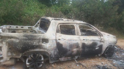 teriam abandonado o veículo e ateando fogo no mesmo, próximo ao Sítio