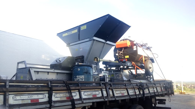 Usina de Asfalto para a pavimentação de ruas. Parte do maquinário chegou