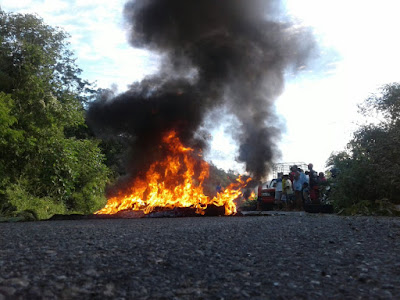 bloquearam na tarde desta quinta-feira, 24, a PB 262, no sentido serra