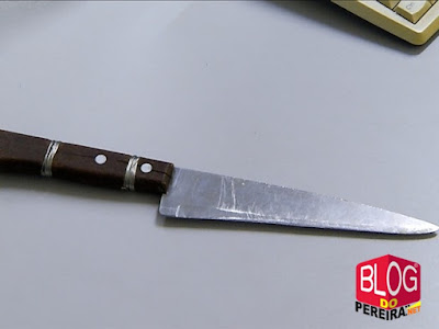 portando uma faca peixeira e teria ameaçado a vítima. Diante dos fatos