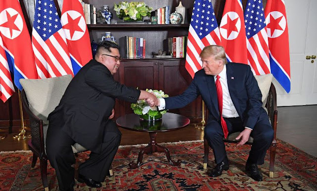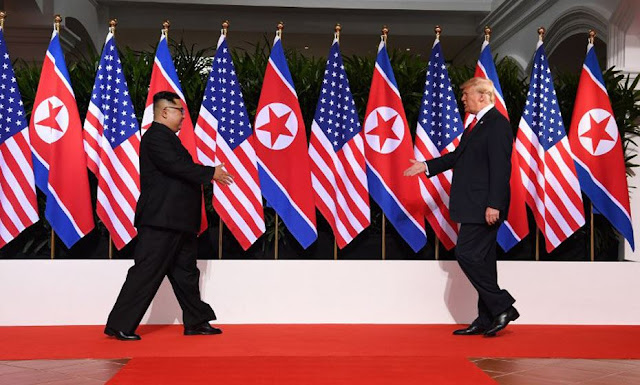 Norte a se reunir. Os dois caminharam um em direção ao outro e trocaram o aperto de mãos em um luxuoso hotel de Singapura, antes de participarem de uma série de reuniões com ramificações para todo o mundo.