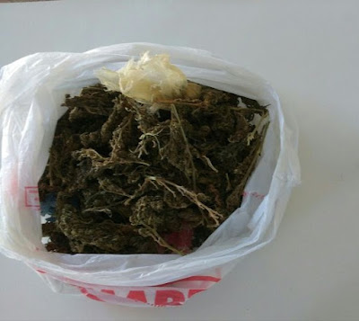 pelo muro, tendo se desfeito de uma quantia de aproximadamente de 150g
