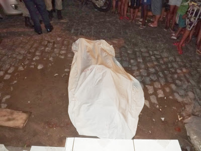 a vítima [:R. Dos S. L.] de 23 anos caída ao chão já sem vida, com 04 (quatro) disparos de arma de