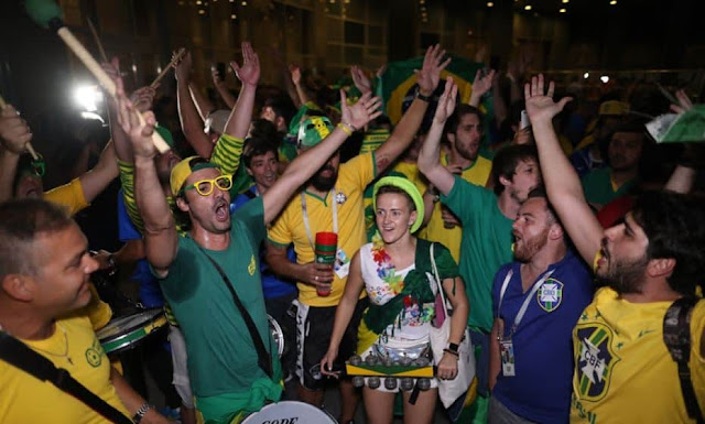 brasileiros promoveu batuque e não economizou nos cânticos.