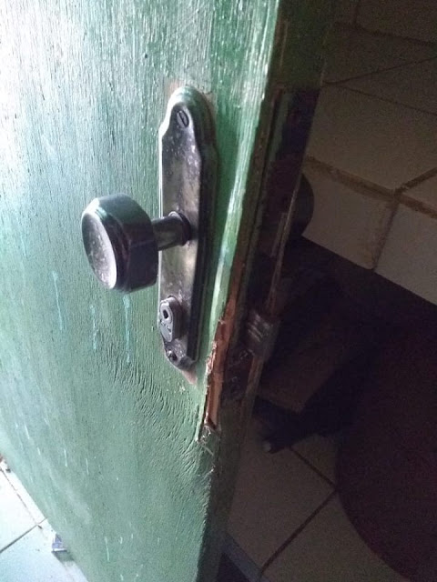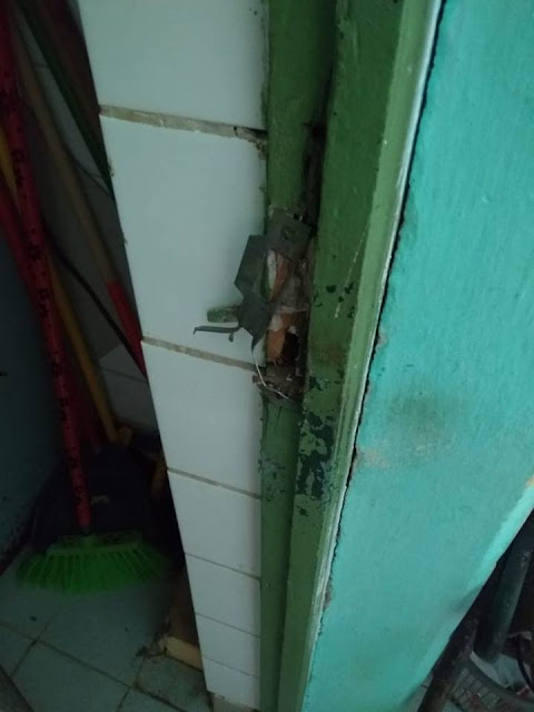 informações da funcionária a porta da cozinha estava danificada, e,