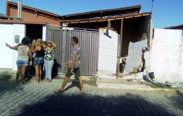 Depois de abalroamento, motorista perde o controle e derruba muro de casa na cidade de Patos.