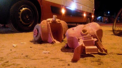 dianteira do caminhão atingiu o garotinho e o seu velocípede ficou