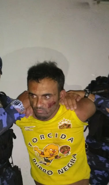 para conter o agressor. O referido foi imobilizado, desarmado, algemado e