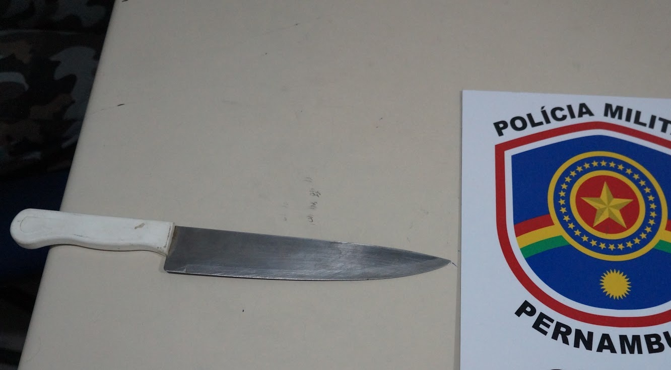ameaçou e também a seu filho, estando de posse de uma faca. Diante dos