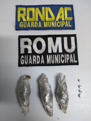 Por volta das 19h30min de ontem (30) o grupamento de RONDAC (Rondas de Apoio ao Cidadão) ao realizar ronda na Rua Raimundo Ferreira, flagrou os imputados [L. A. C.] de 35 anos e [J. R. N. S.] de 29 anos em uma motocicleta de placa PGL 2266 em velocidade não compatível com a via. De imediato o grupamento deu ordem de parada aos mesmos, porém não foi acatada, sendo assim, foi feio o acompanhamento dos mesmos e durante este, o [L. A. C] tentou se desfazer de um objeto que tinha sobre o bolso esquerdo de sua jaqueta jogando sobre o solo.