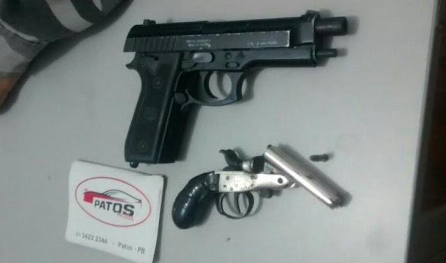 estavam com uma arma conhecida por garrucha e outra sendo um simulacro