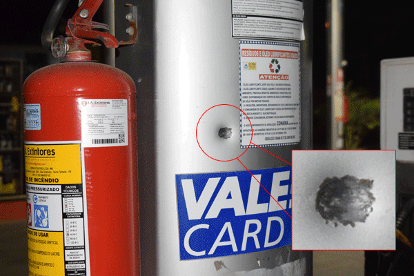 tiros estão espalhados pelo posto. Segundo informado por um dos