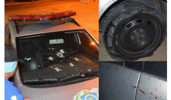 viatura já com um policia ferido.