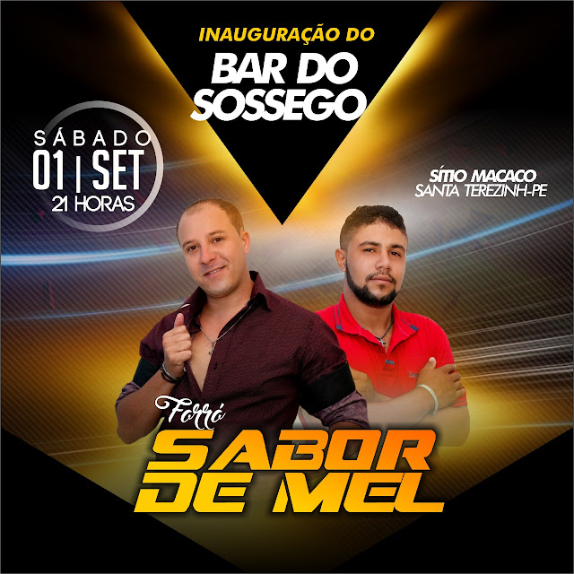 O Bar do Sossego no Sítio Macacos, zona rural de Santa Terezinha e parceiro do blog passou por reforma para melhor acolher seus fregueses, oferendo mais conforto com o bom atendimento de sempre, ampliando seu espaço e construindo um palco para realizar festas, encontros e confraternizações. Para inaugurar as novas instalações o proprietário do bar Manoel do Macaco está convidado todos de Santa Terezinha e de toda região para participar de uma festa no dia 1º de setembro, às 21hrs com o Forró Sabor de Mel. Estejam todos convidados.