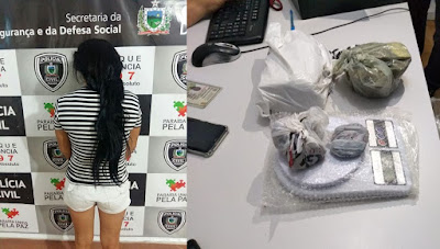 Delegacia de Polícia plantonista, onde foi autuada pelo crime de tráfico
