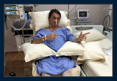 da facada mostra isso mais do que nunca: com sua vestimenta hospitalar,
