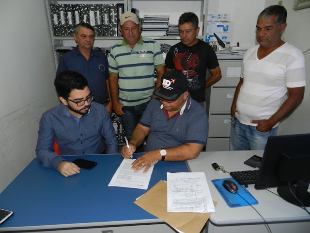 O vice prefeito Adarivan Santos, Joinha, Nego Macaco e Orlando do Vasco acompanharam a assinatura do contrato.