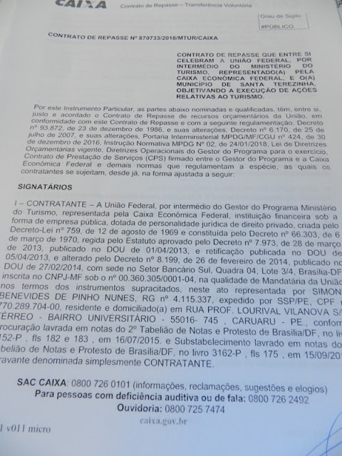 Santa Terezinha – Vaninho assina contrato com a Caixa para reforma da Praça Central.