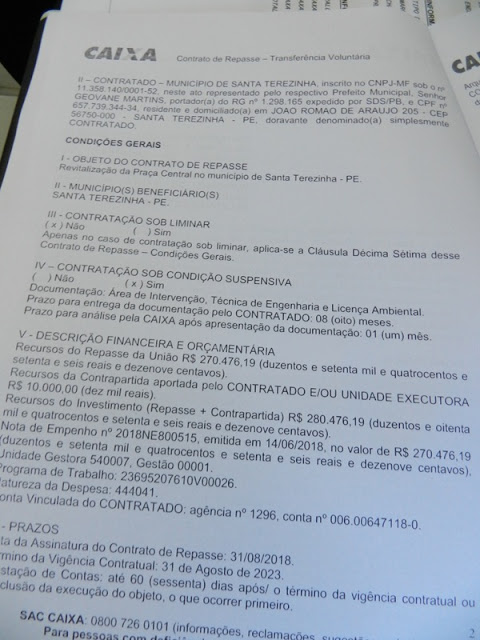 setenta e seis reais e dezenove centavos) para a requalificação da praça. A prefeitura entrou com contra partida de R$