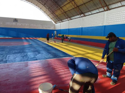 Prefeitura de Imaculada reforma quadra de esportes da cidade. Veja!