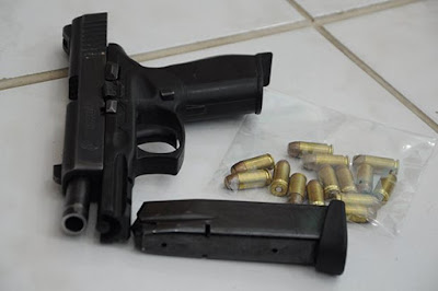 um deles pegou uma pistola Ponto 40 e começou a manusear a arma próximo