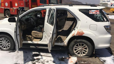 integrantes do grupo, que estão em uma caminhonete prata, estão sendo