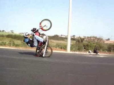 levantou o pneu dianteiro do veículo (empinou) efetuando manobra arriscada