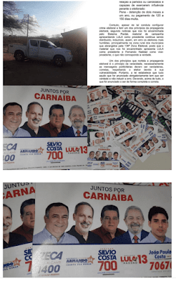 “santinhos” pronta para serem entregues de forma irregular. Eles, segundo a nota, continham a foto