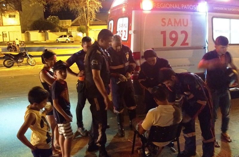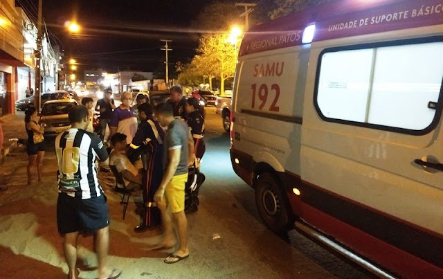 Em Patos, brincadeira de bola em praça provoca acidente que deixa motociclista com clavícula quebrada.