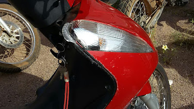 Honda Biz, vermelha, placa KIY-0080, quando perdeu o controle do