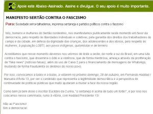 Fascismo”, deu início a uma campanha de assinaturas on-line, que visa