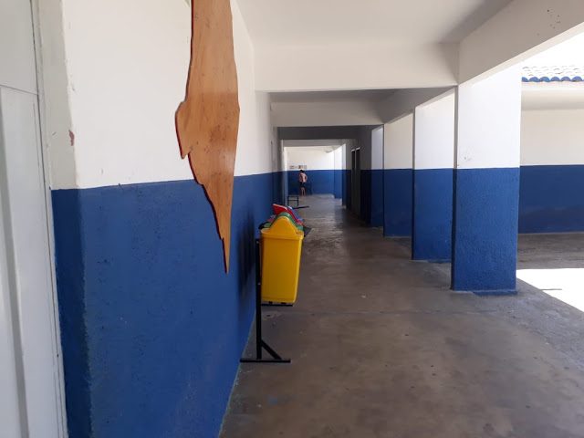 | Corredores da EREM Santa Terezinha praticamente vazios. |